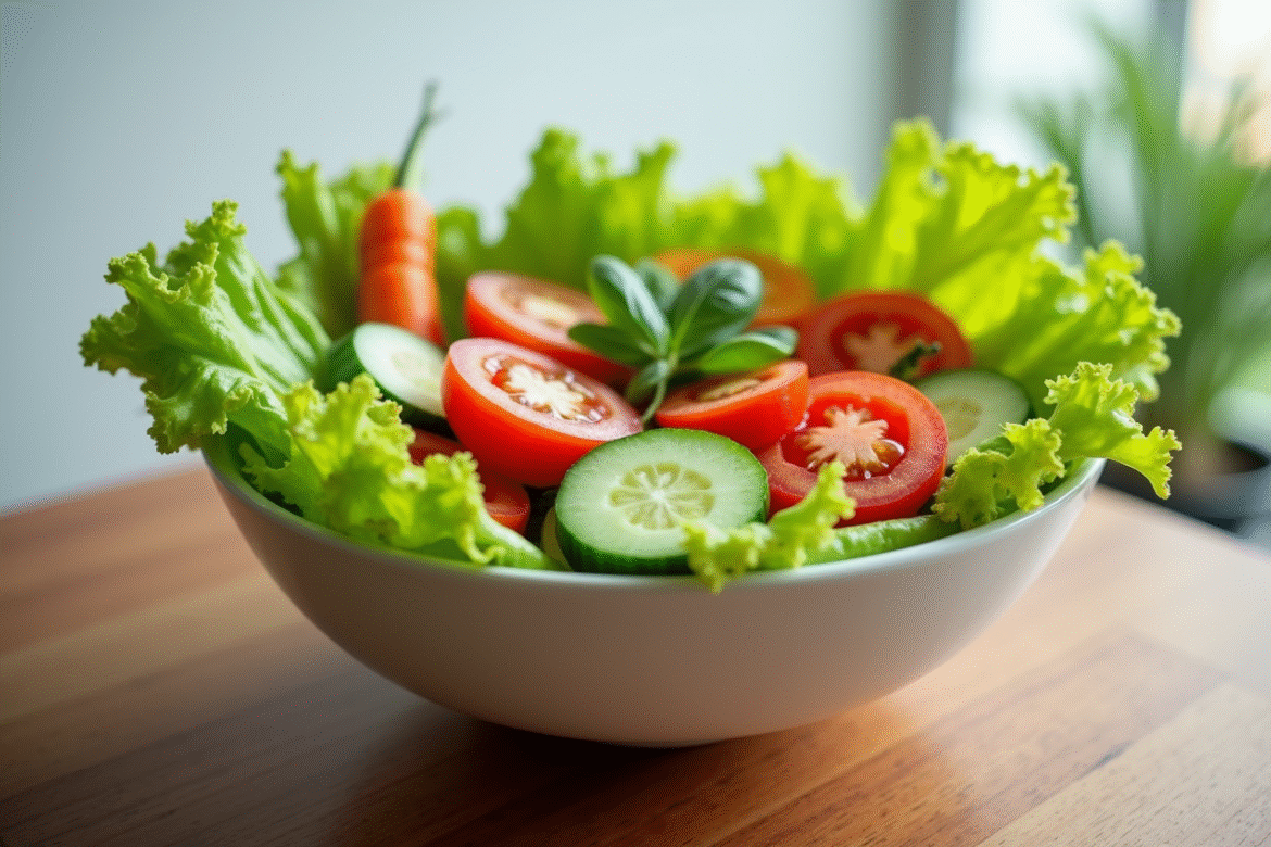 Préparez une salade composée. Mélangez laitue iceberg, radis, tomates, et chou chinois. Assaisonnez avec une vinaigrette légère au citron. Pour une option plus consistante, incorporez des pâtes de konjac, riches en fibres et très faibles en calories.