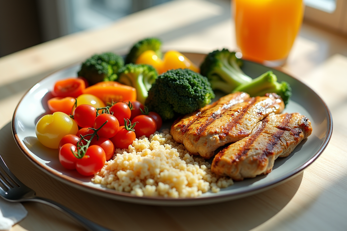 Les protéines maigres sont aussi majeures. Optez pour des sources telles que le poulet sans peau, le poisson, les légumineuses et le tofu. Ces protéines favorisent la construction musculaire tout en étant faibles en graisses saturées. En complément, les légumes et fruits doivent constituer une large part de votre assiette. Riches en fibres, vitamines et minéraux, ils contribuent à un apport nutritionnel complet et aident à réguler l’appétit.