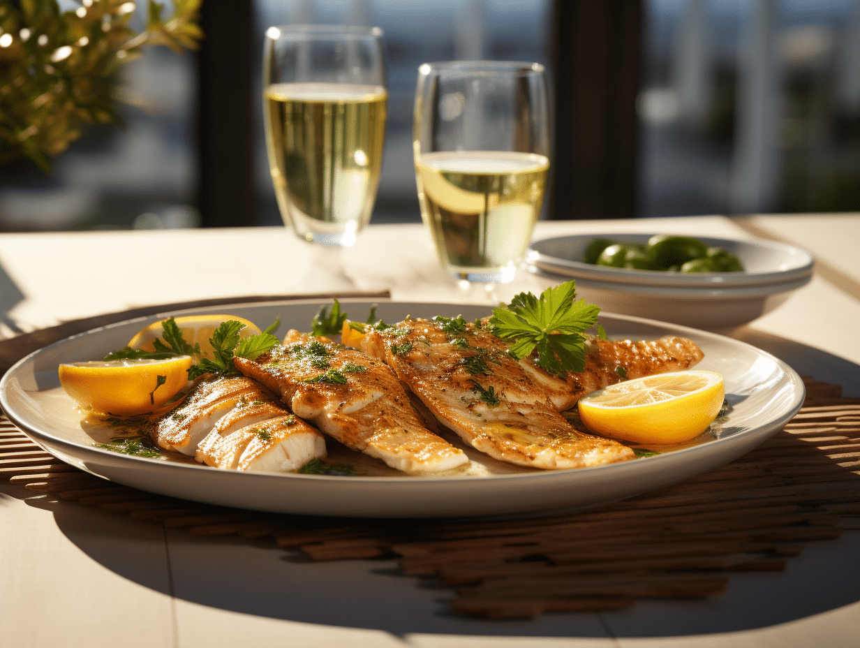 Place à la cuisson : dans une poêle antiadhésive, le beurre fond doucement jusqu’à prendre une teinte noisette, signe d’un parfum développé. Les filets sont déposés, peau vers le bas si elle subsiste, et régulièrement arrosés pour garantir une chair juteuse et une surface croustillante.
